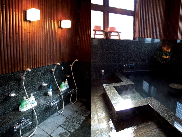 (当宿では浴室壁と、天井全面に竹炭を塗料として塗ってあります。)